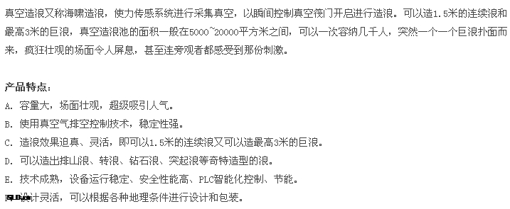 水上樂(lè)園設(shè)施您當(dāng)前的位置:網(wǎng)站首頁(yè) > 產(chǎn)品展示 > 水上樂(lè)園設(shè)備 > 水上樂(lè)園設(shè)施>造浪池